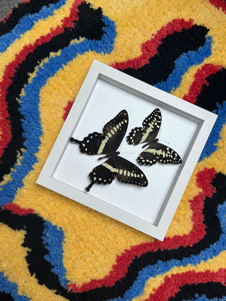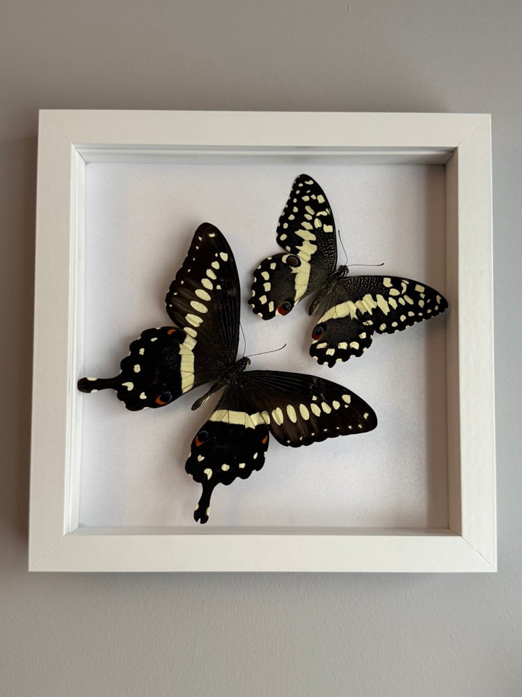 All items sold by Papillonhaus are handmade, one-of-a-kind pieces of art crafted from ethically sourced specimens. Due to the natural variation in insects and the handmade nature of the work, slight differences in size, colour, and appearance may occur between frame.