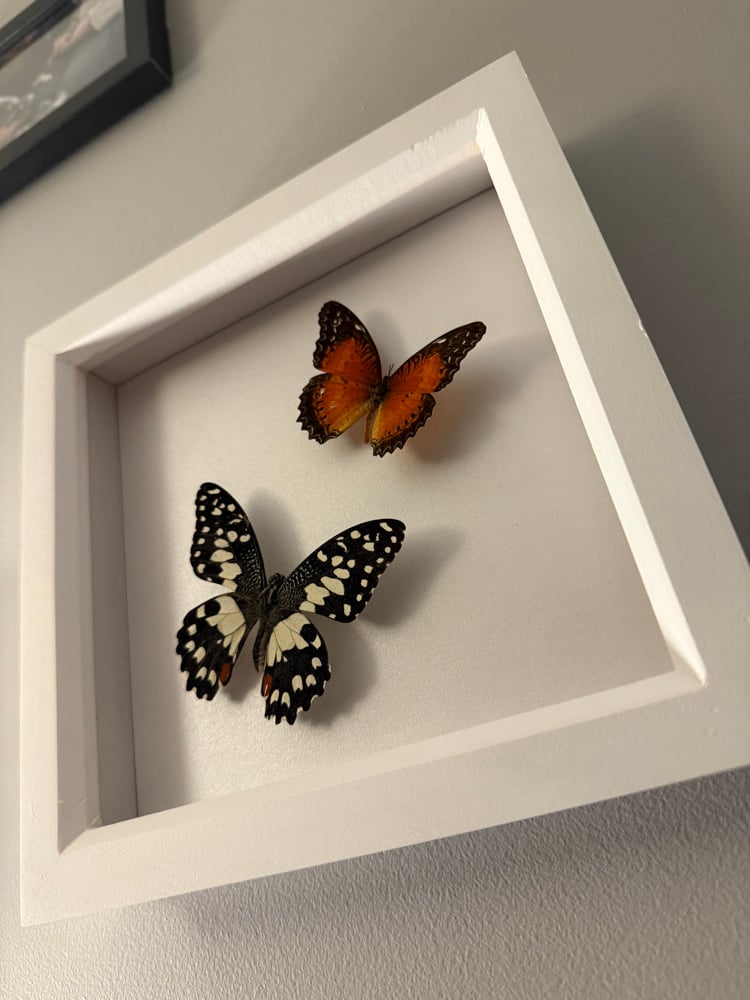 All items sold by Papillonhaus are handmade, one-of-a-kind pieces of art crafted from ethically sourced specimens. Due to the natural variation in insects and the handmade nature of the work, slight differences in size, colour, and appearance may occur between frame.